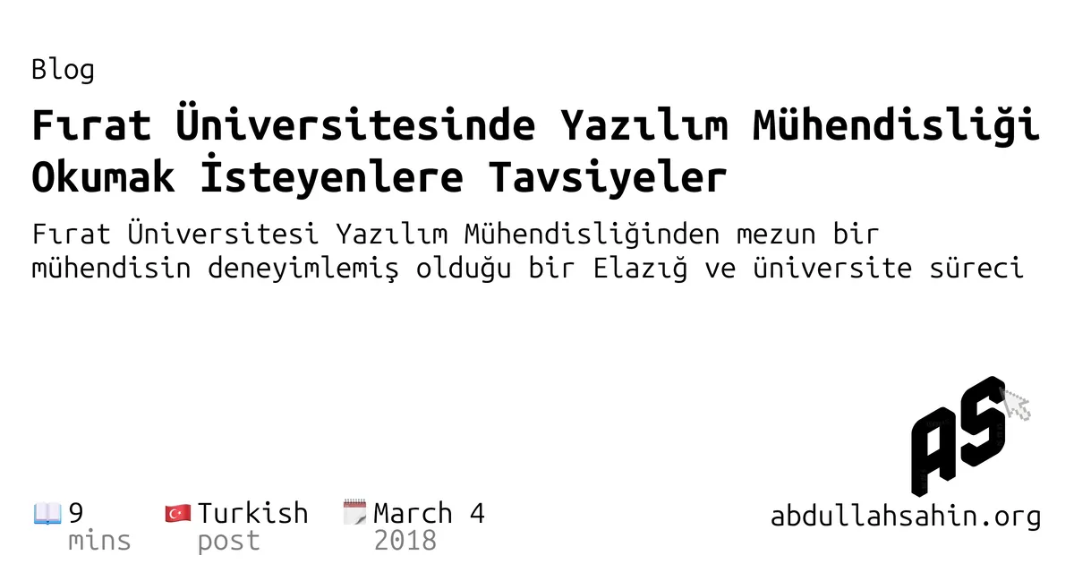 Read more March 4, 2018 🇹🇷 Fırat Üniversitesinde Yazılım Mühendisliği Okumak İsteyenlere Tavsiyeler Fırat Üniversitesi Yazılım Mühendisliğinden mezun bir mühendisin deneyimlemiş olduğu bir Elazığ ve üniversite süreci REC fırat üniversitesielazığyazılım mühendisliği